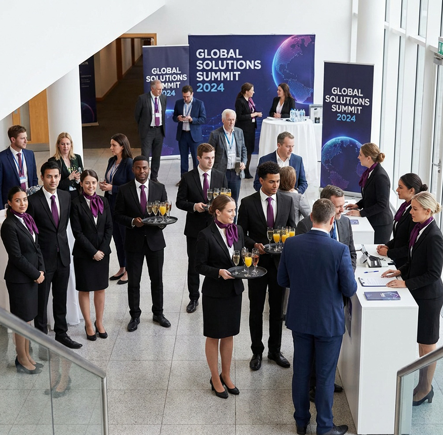 Whether we are supporting a major corporate event, an exhibition, or a private function, our commitment is always the same: to provide exceptional people, outstanding service, and the kind of attention to detail that gives our clients complete peace of mind.”